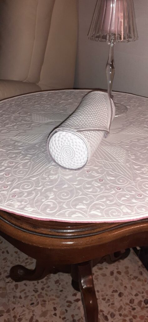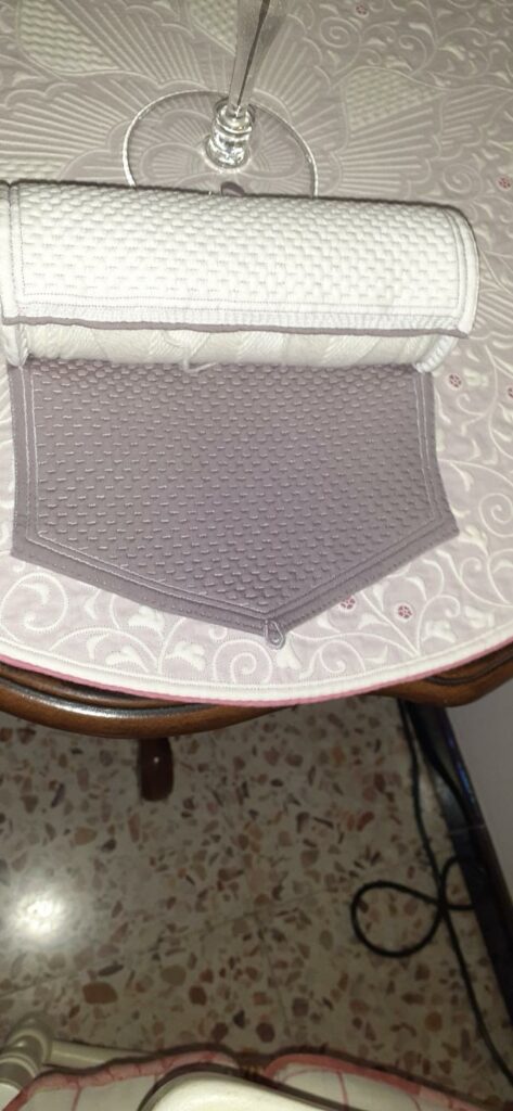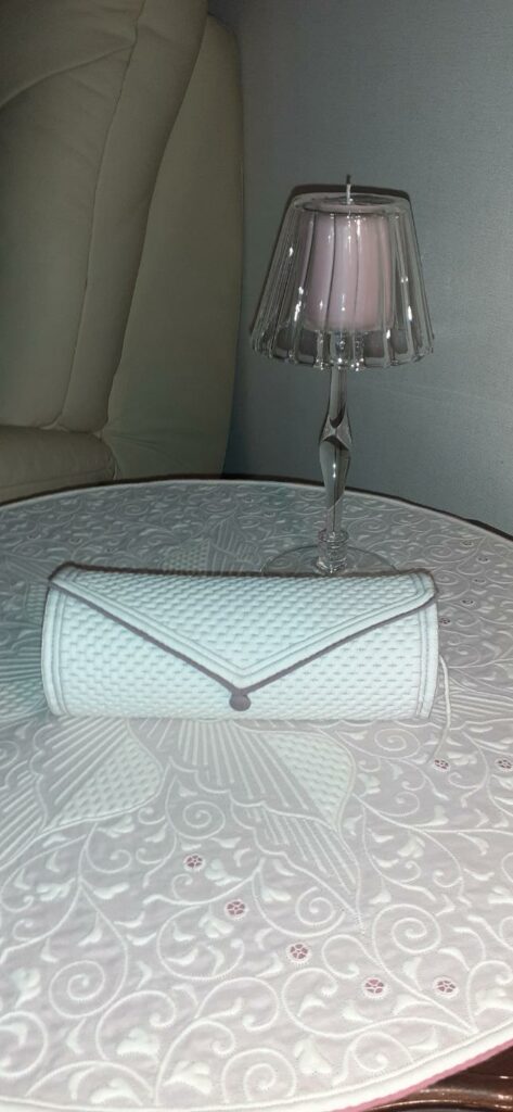 A partir d’un modèle proposé par Géralde dans le numéro 36 de votre revue Le Fil Blanc, Monique a réalisé cette pochette protège bobine.