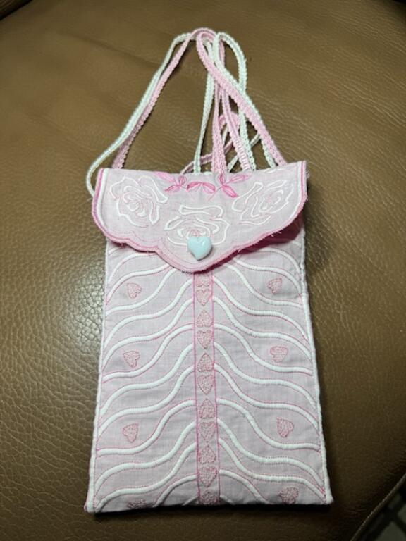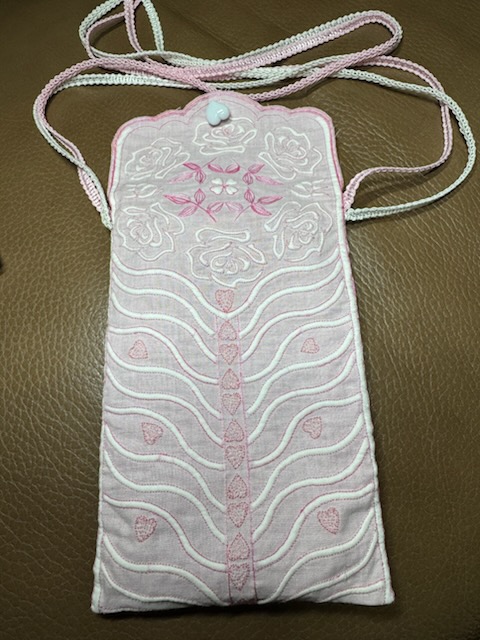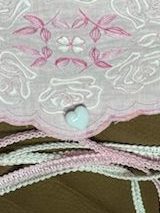Et l’assorti du ruban ! Et le point de feston au fil nuancé…