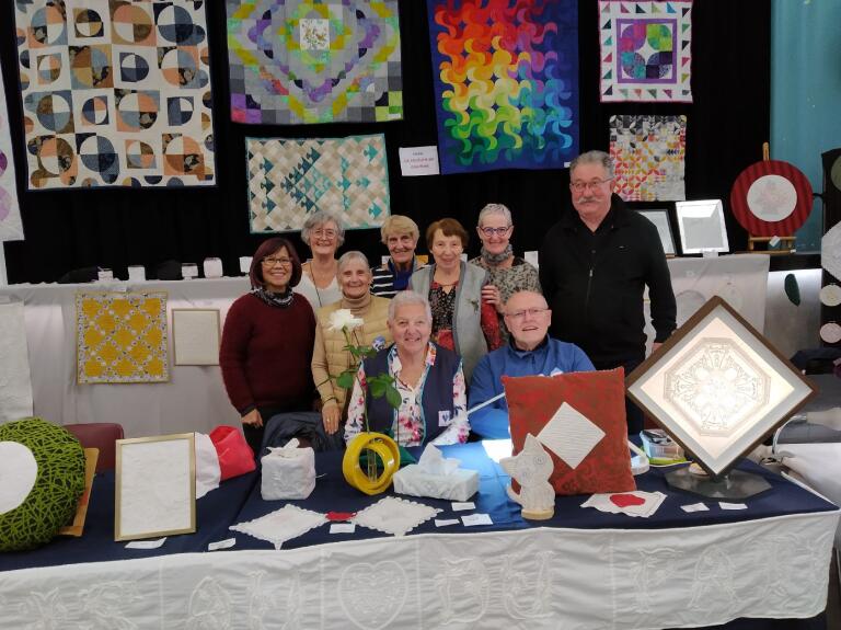 Un joli contraste entre les couleurs chatoyantes du patchwork et le blanc des boutis.